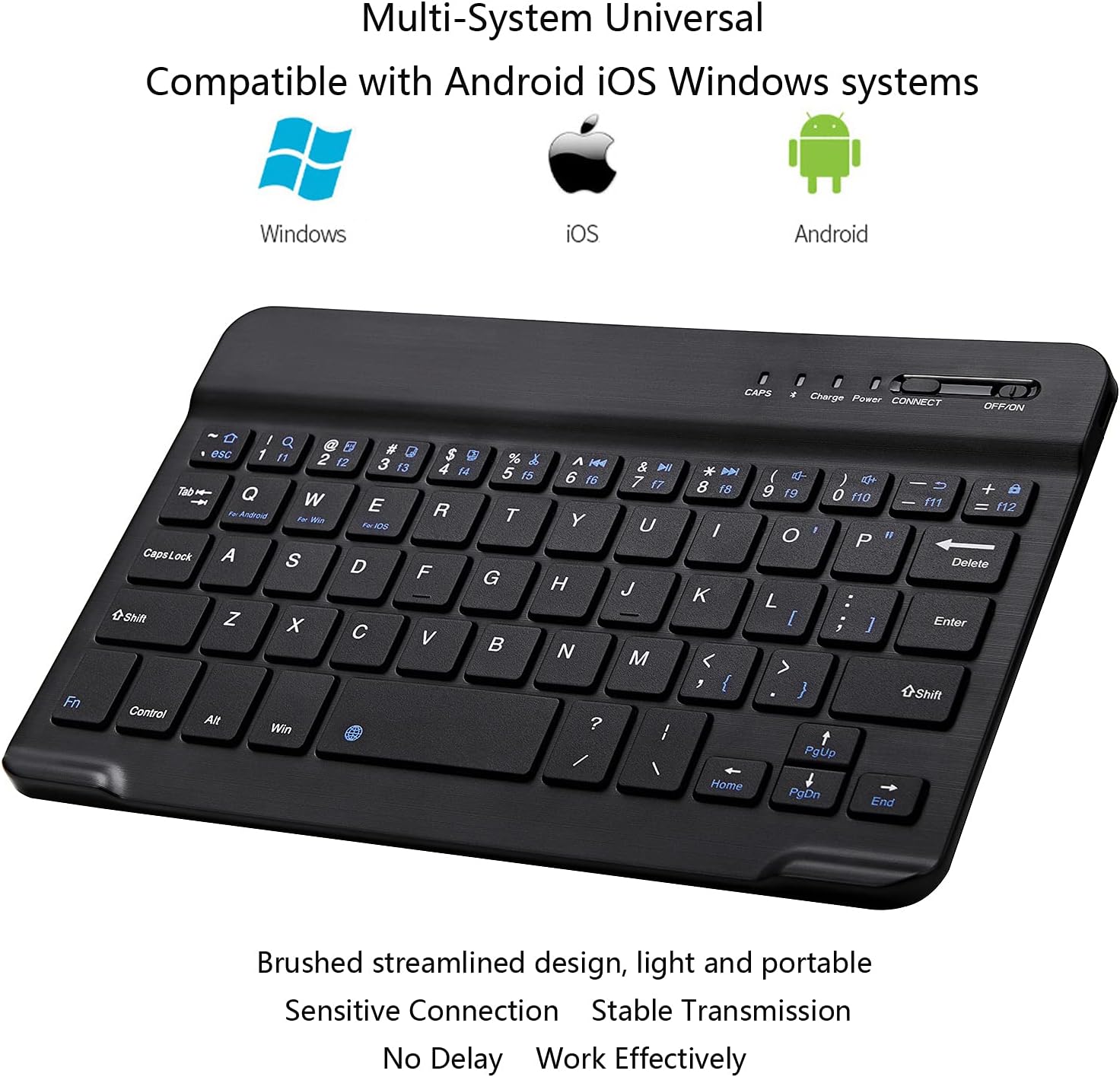 Compatible with a range of devices including Apple iPad, iPhone, Samsung tablets, phones, smartphones, iOS, Android, and Windows devices, this keyboard is versatile and user-friendly. The rechargeable battery ensures long-lasting use, and the Bluetooth connectivity allows for seamless pairing with your devices.