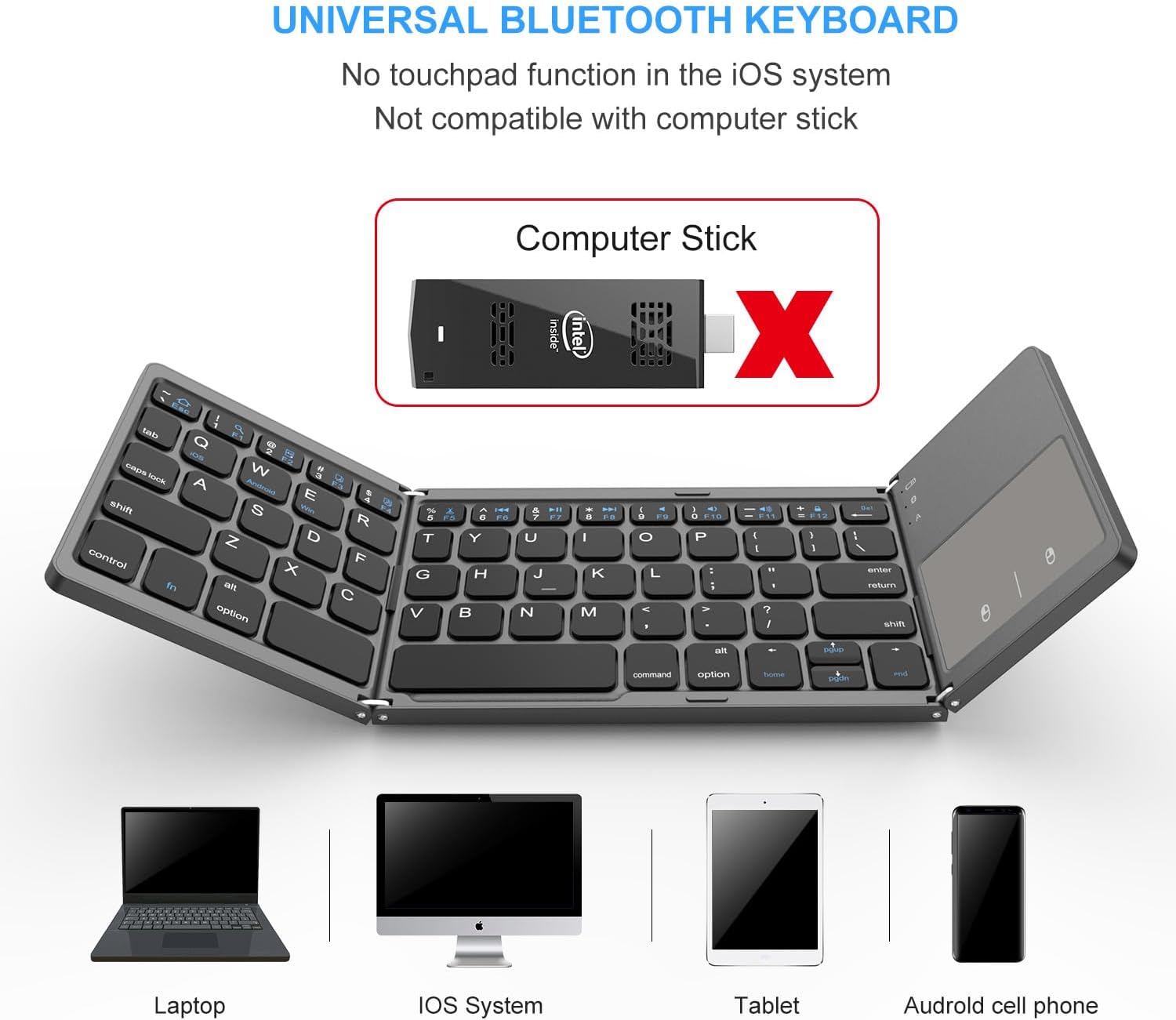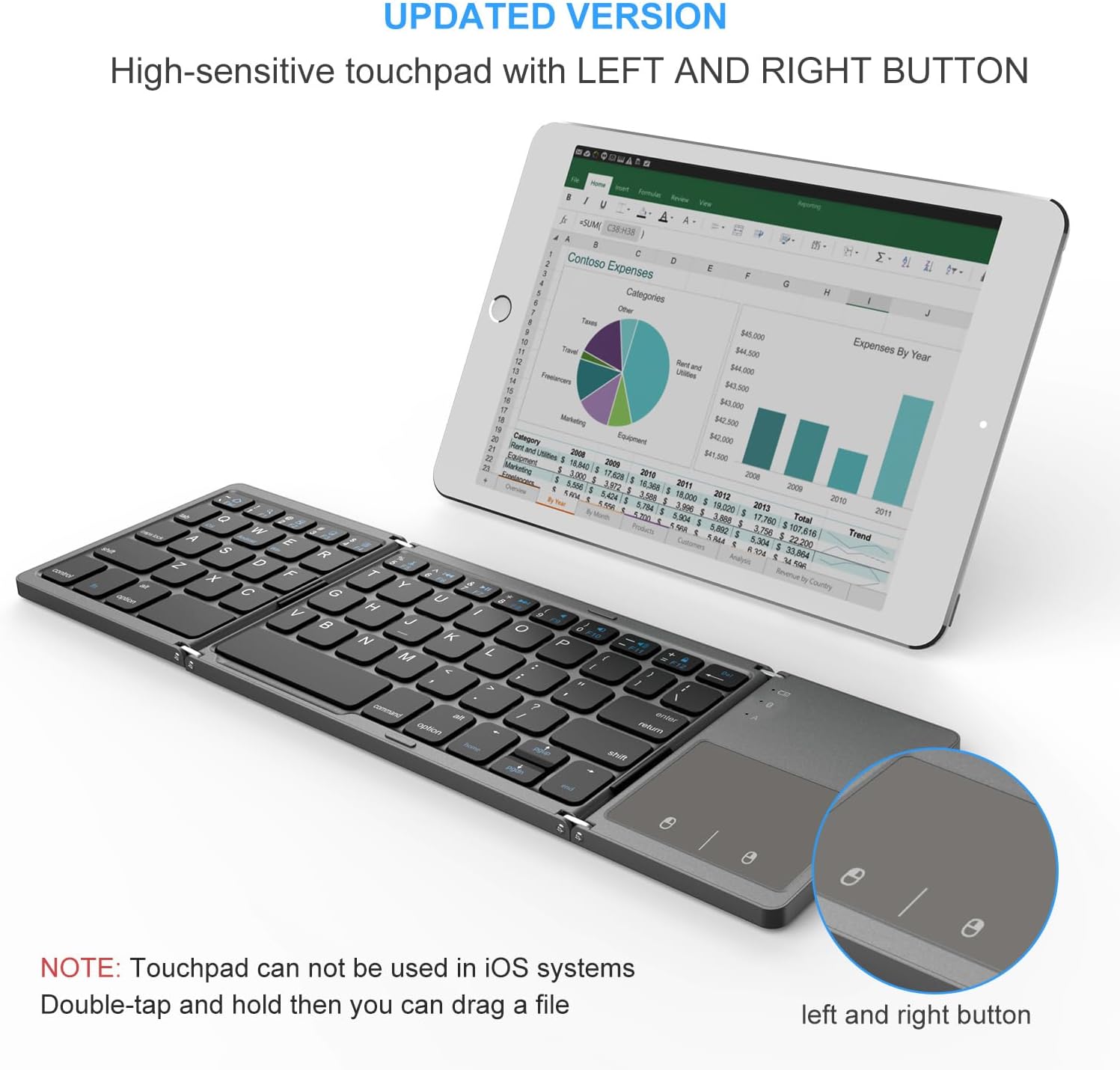 The foldable design makes this keyboard compact and easy to carry, perfect for traveling or working on the go. The touchpad allows for easy navigation and control, eliminating the need for a separate mouse.