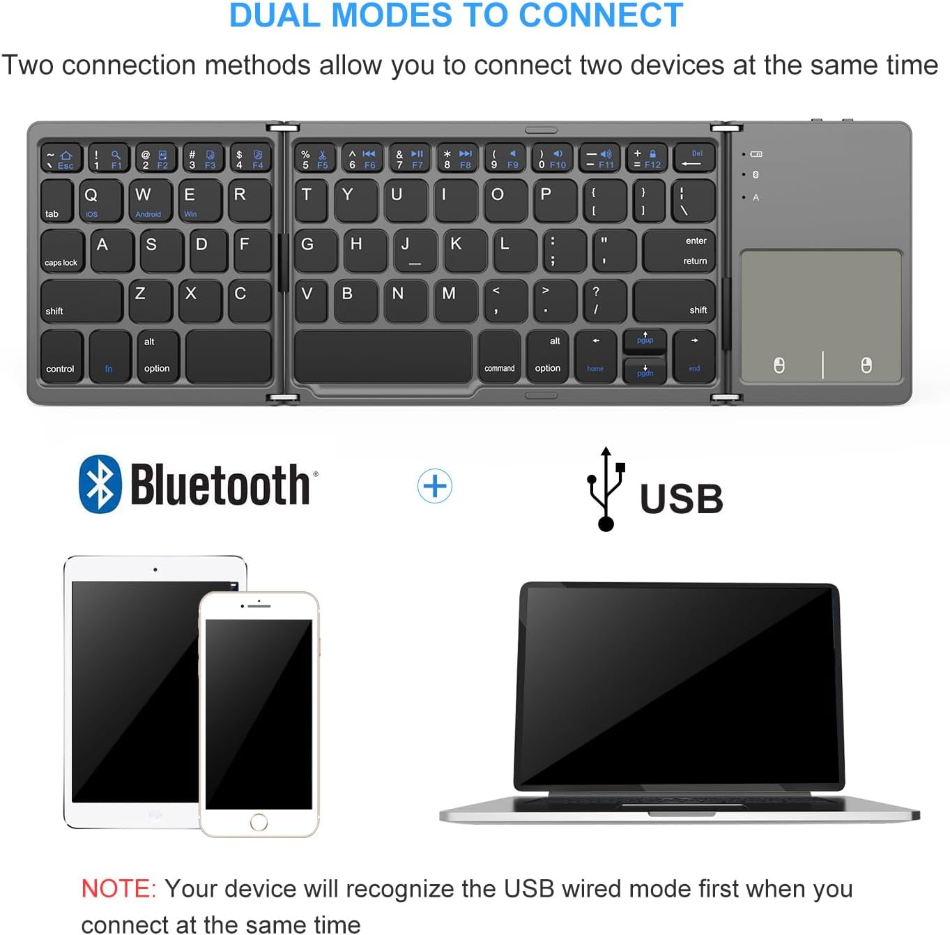 Introducing the VssoPlor Foldable Bluetooth Keyboard with Touchpad – the ultimate solution for all your typing needs on the go. This portable keyboard is designed for Android tablets and Windows devices, offering dual modes for both USB wired and wireless connections.